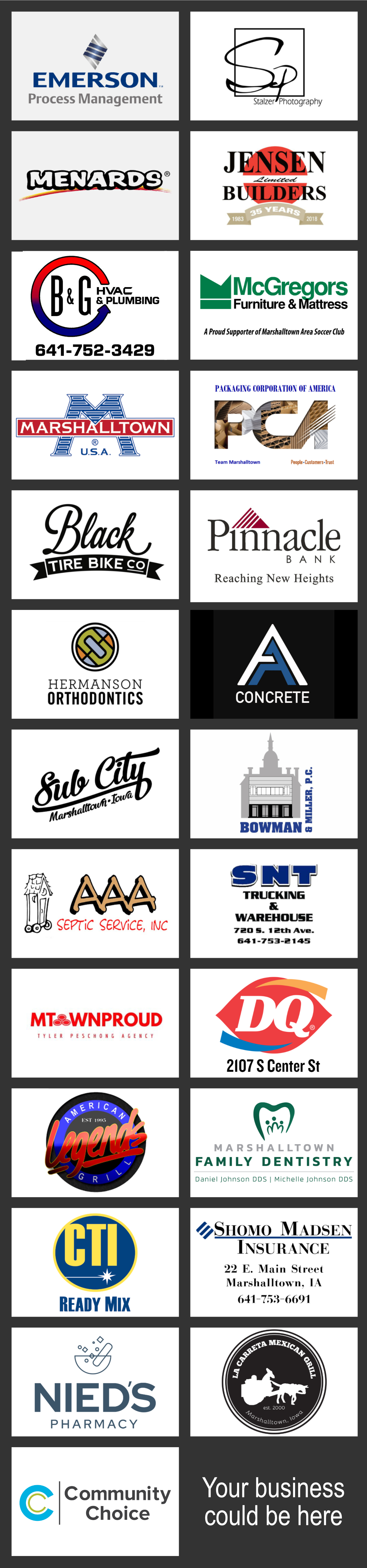 Marshalltown Area Soccer Club 1811 S 18th Ave, P.O. Box 612Marshalltown, Iowa 50158